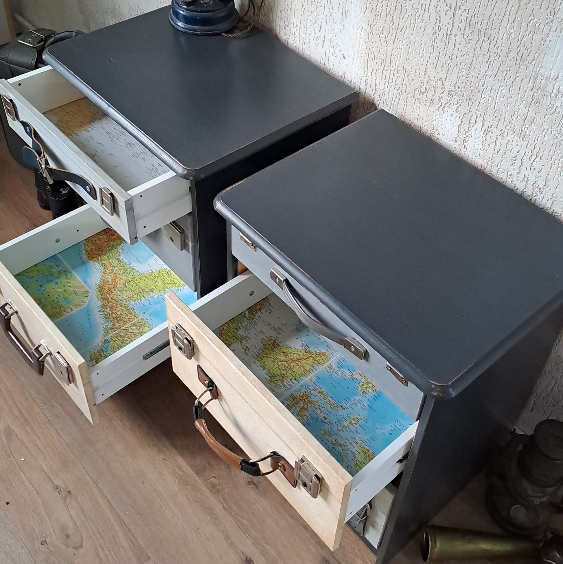 Set nachtkastjes in kofferlook