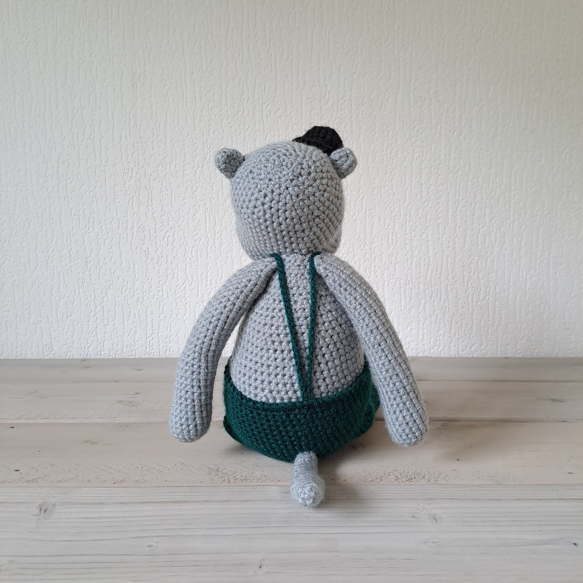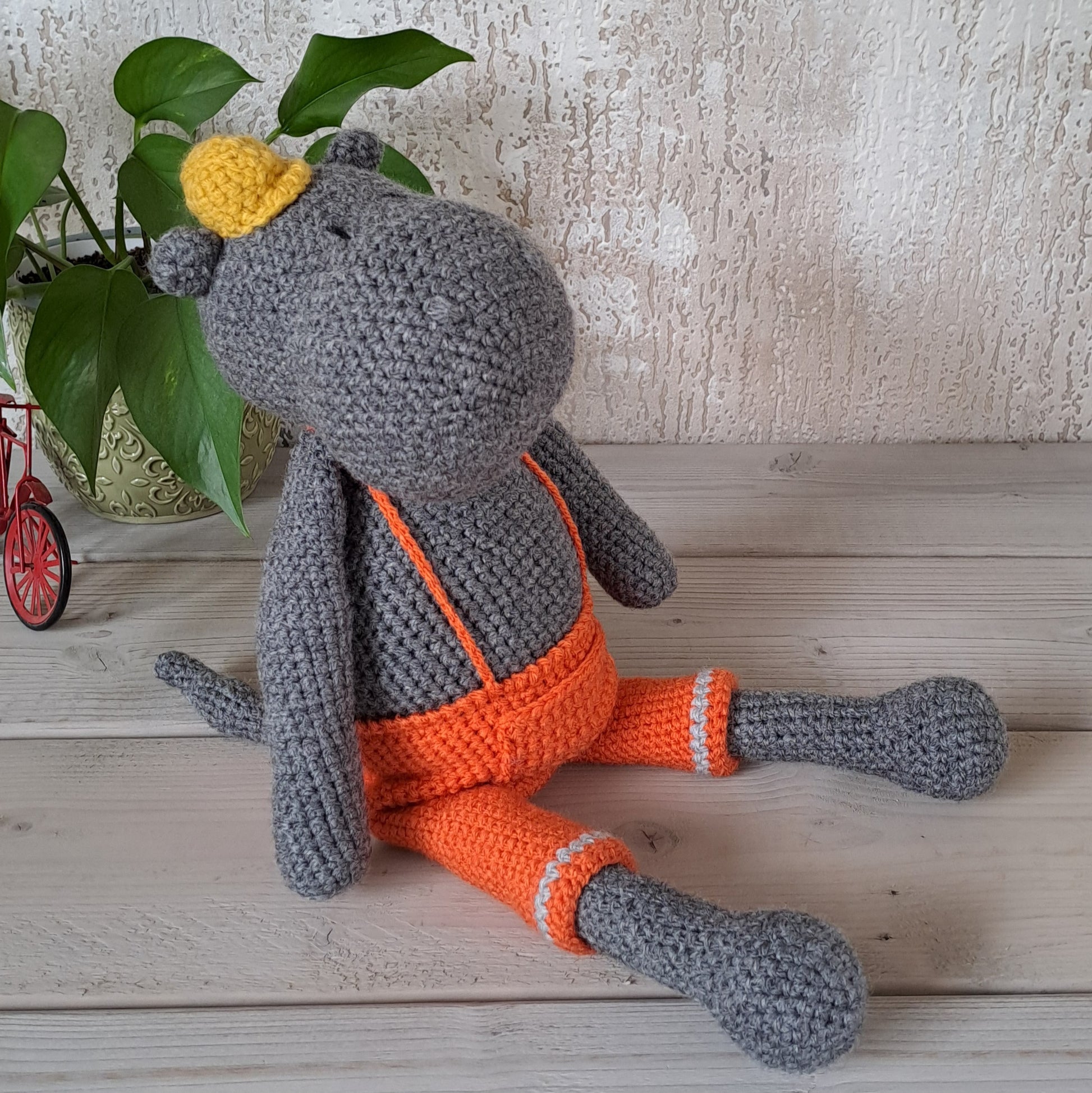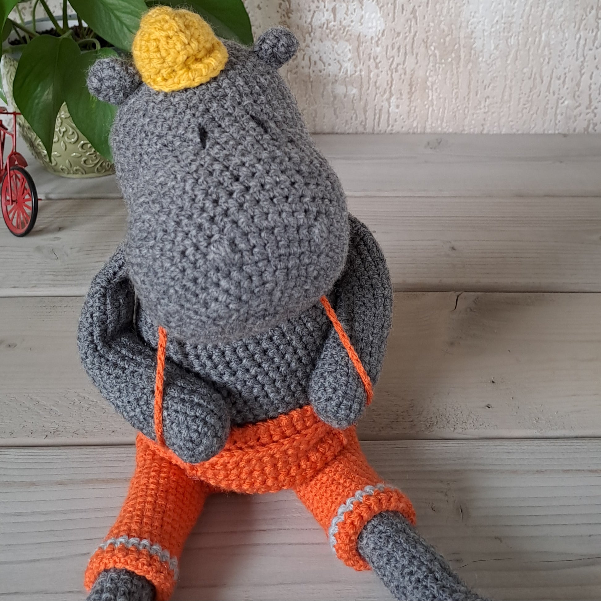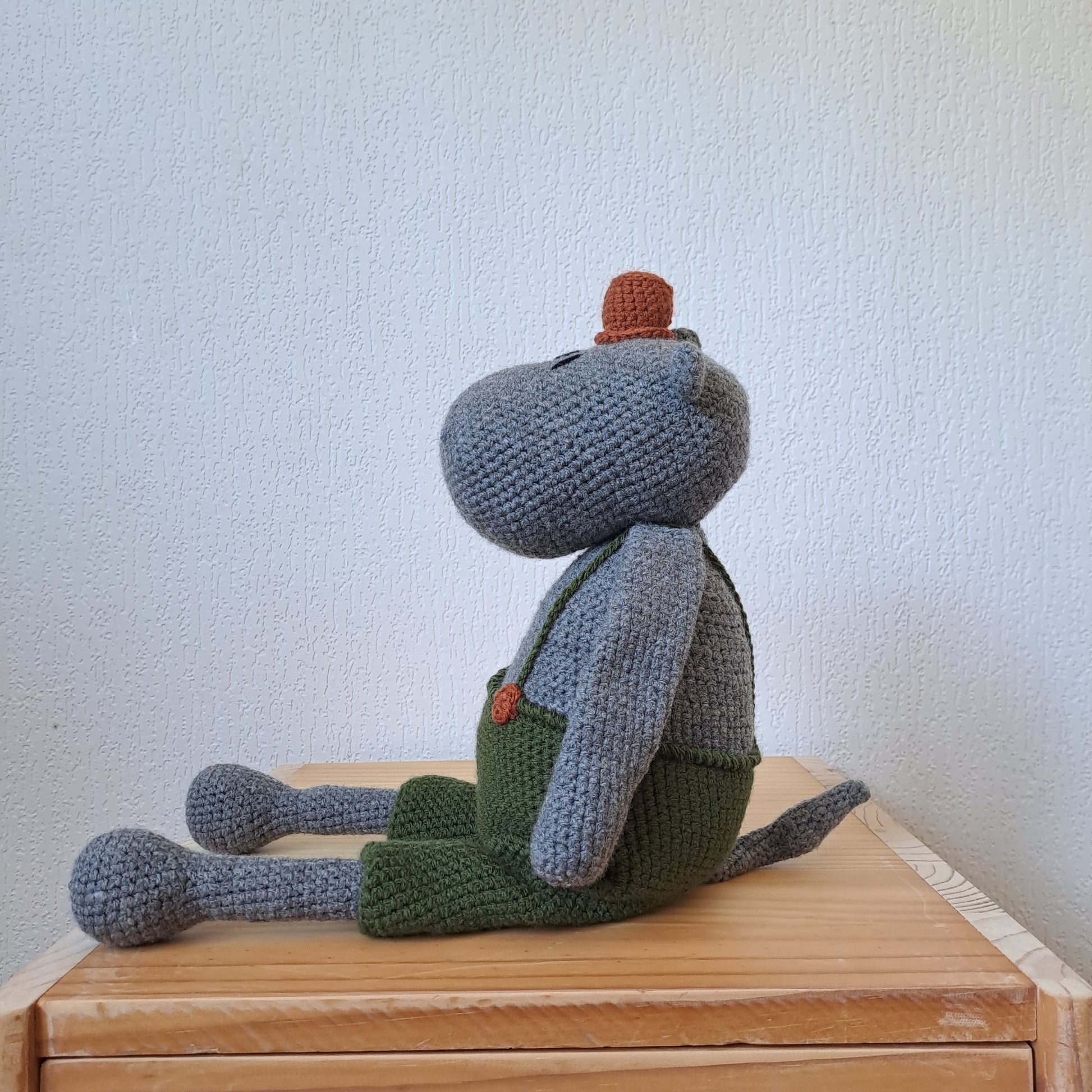 Dit heerlijk knuffelige gehaakte nijlpaard met tuinbroek en hoed is goed voor uren speelplezier! Door zijn uiterlijk zit hij ook nog eens leuk in je kamer!