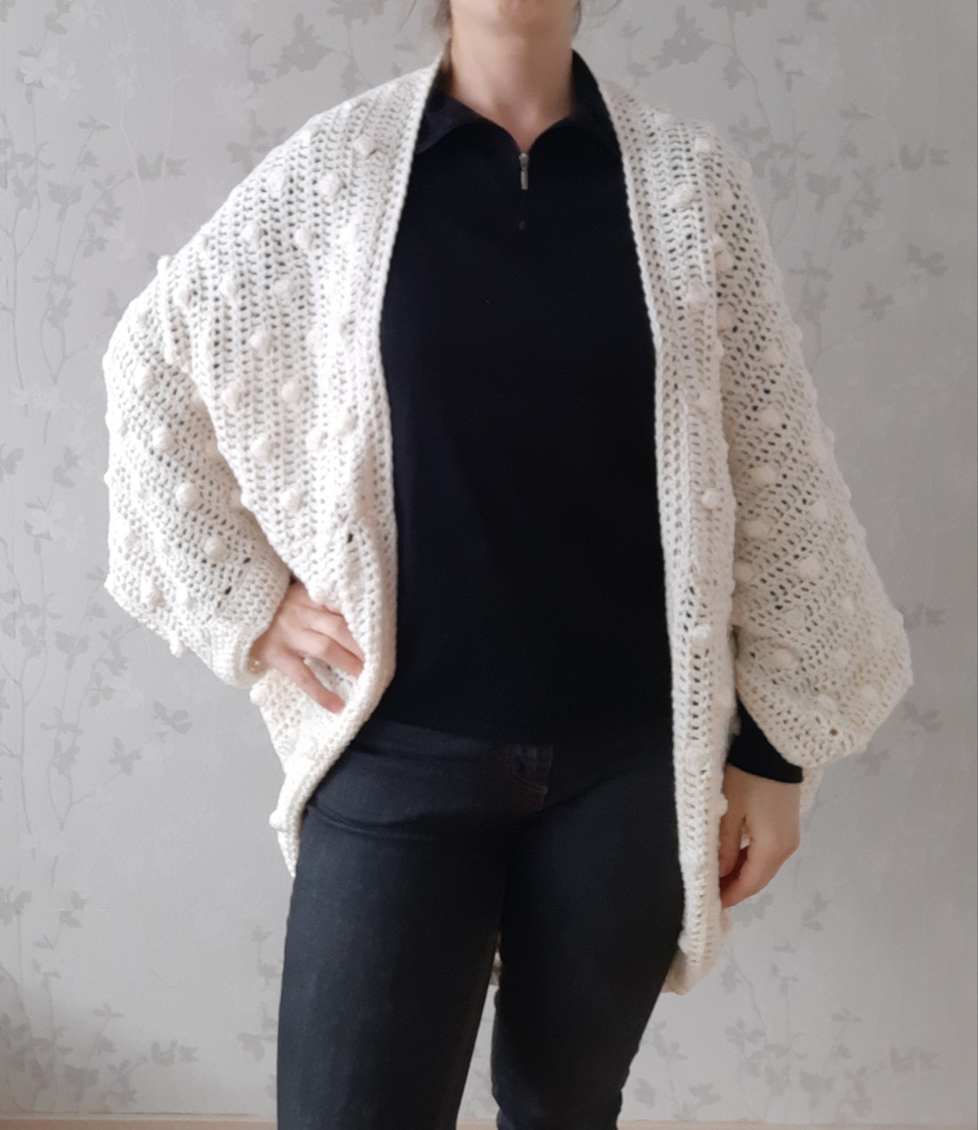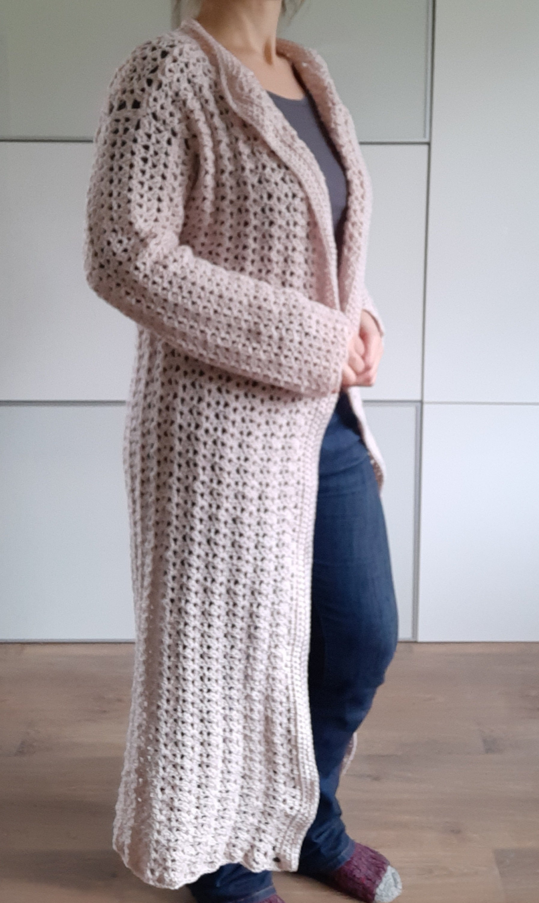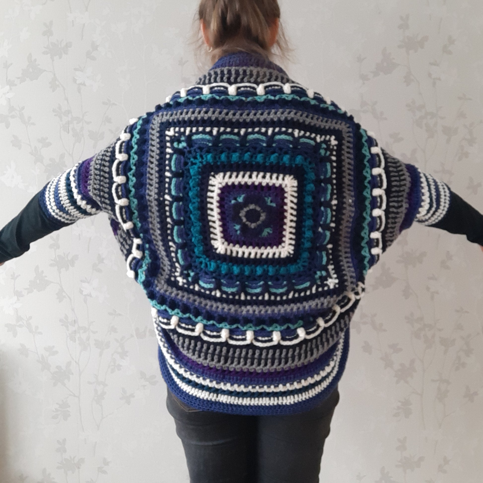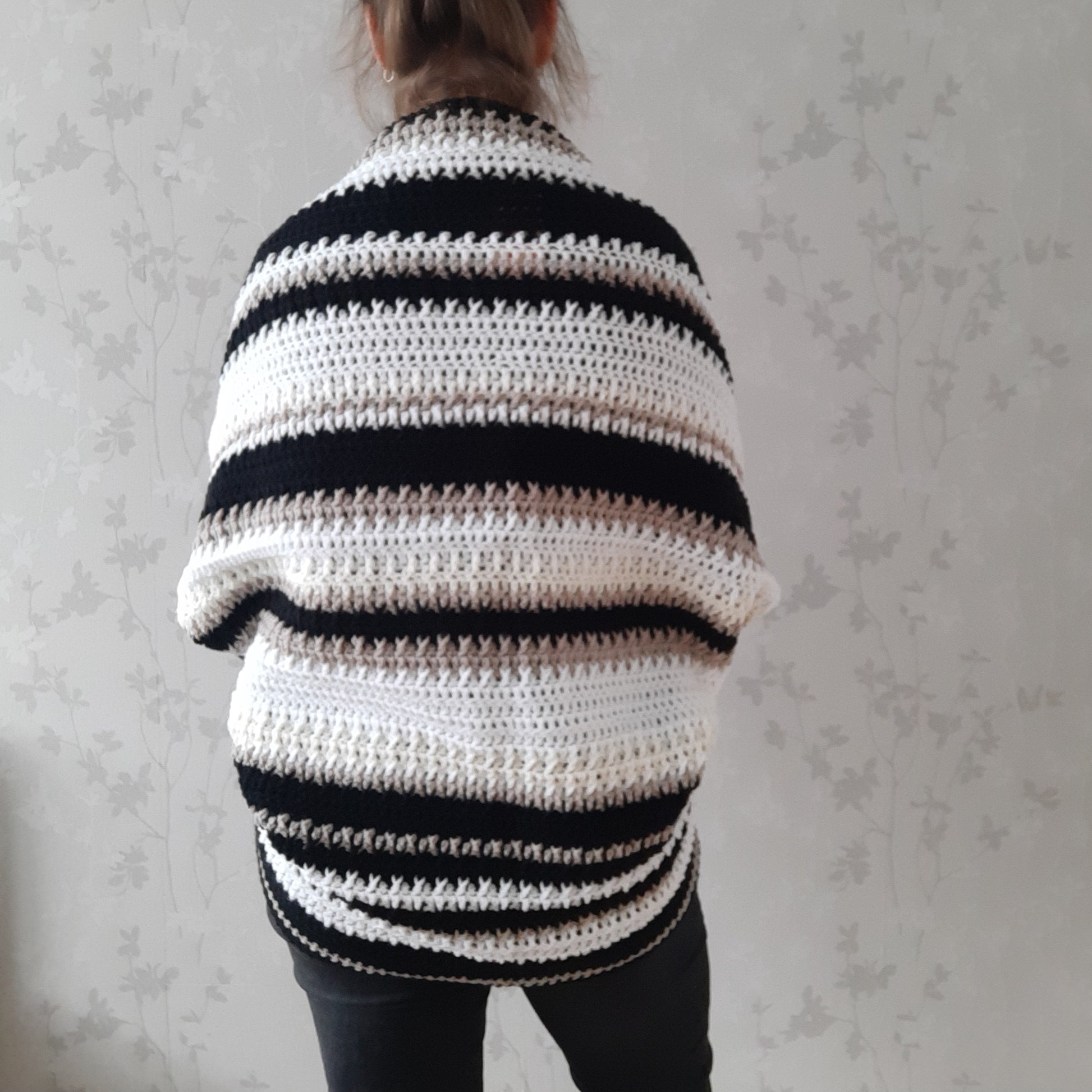 Overige shrugs en de lange vesten zijn gehaakt met 100% Acryl garen.