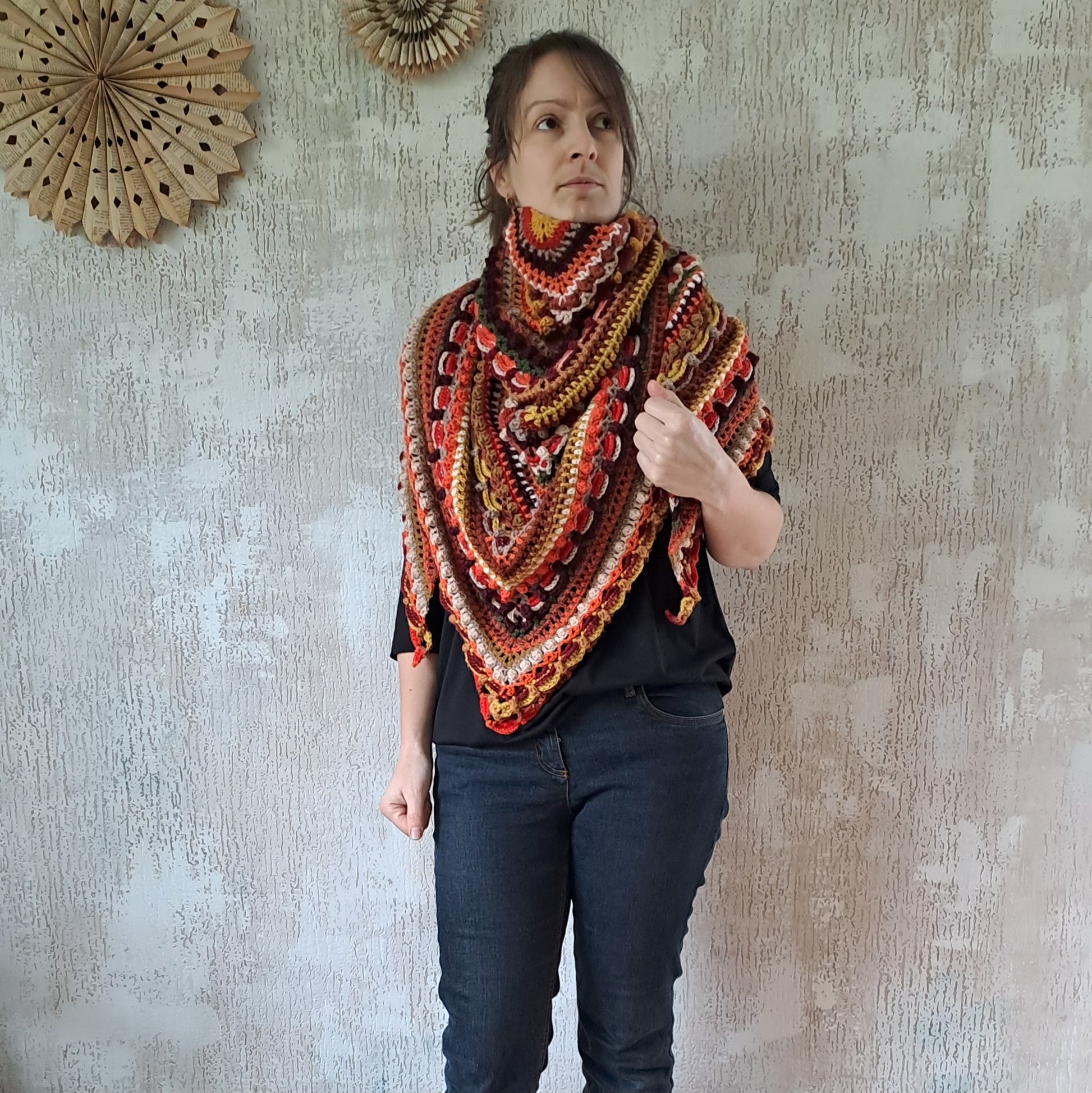 Uniek gehaakte stola in een wisselend reliëf patroon waardoor deze met de verschillende kleuren een unieke uitstraling heeft.