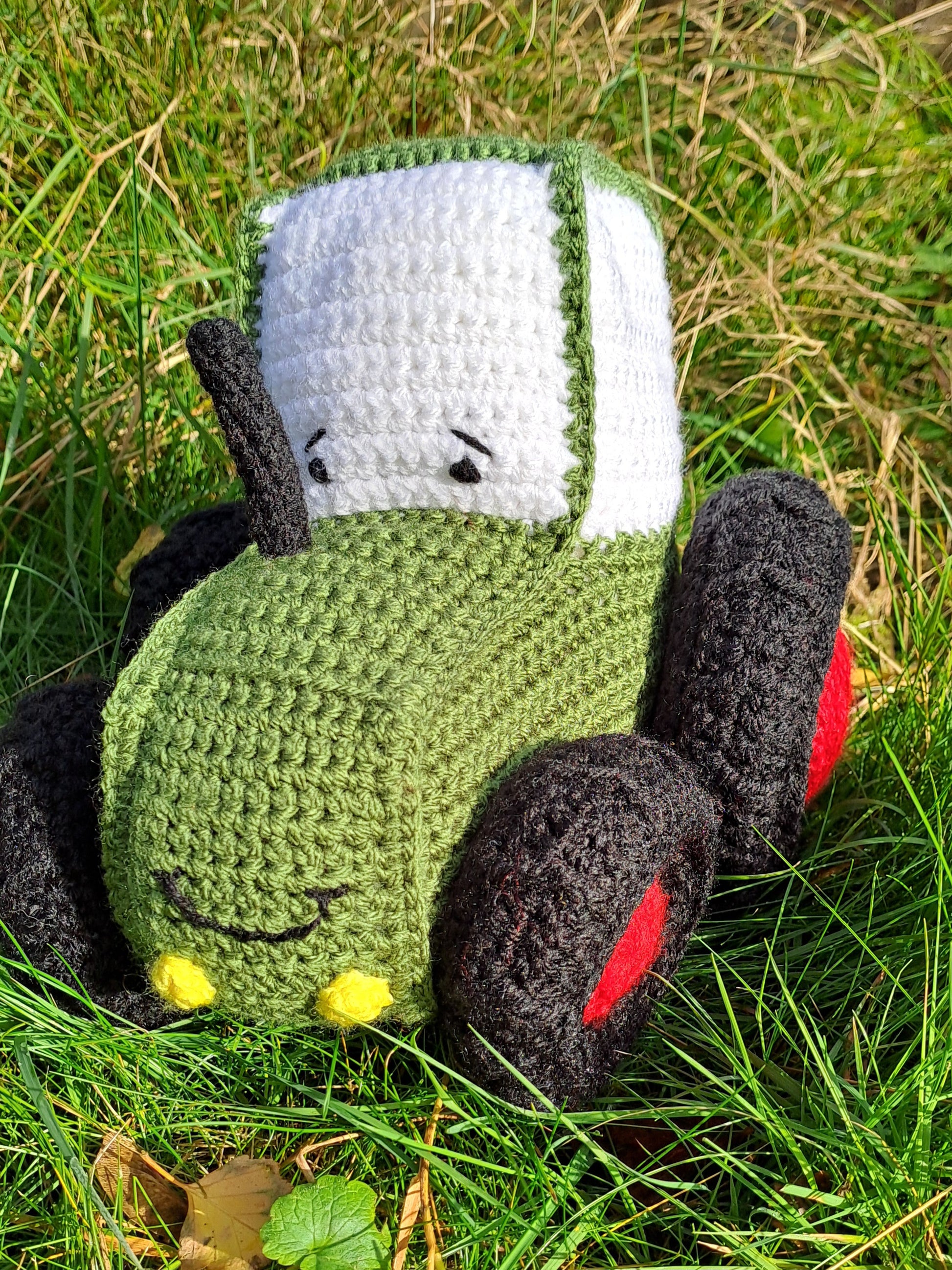 Lekker grote gehaakte Fendt tractor knuffel in groen met rode velgen.